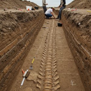 Enormous Spine Fossil Unearthed in Remote Field Stirs Global Controversy Mystery NgoPhong September 11, 2025 Archaeologists conducting a routine excavation in a remote field have made a discovery so massive that it has stunned both scientists and the public alike: what appears to be a colossal fossilized spine stretching the full length of a massive […]