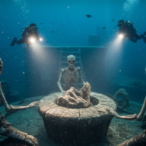 BREAKING DISCOVERY: UNDERWATER SKELETONS OF MERMAID CIVILIZATION FOUND! In a discovery that has sent shockwaves through both the scientific community and the general public, a team of deep-sea divers has reportedly uncovered a haunting underwater tableau — a circular stone chamber filled with humanoid skeletons bearing unmistakably aquatic features, including elongated vertebrae and scaled tails. […]