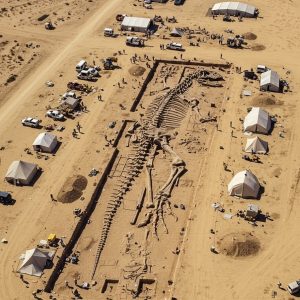 Beneath the unforgiving sun and endless dunes, a remote desert has become the epicenter of a discovery shaking the very foundations of science and history. Excavators have uncovered a fossilized skeleton of such staggering size that it eclipses any known species in the fossil record. Towering rib bones jut from the sand like ancient monoliths, […]