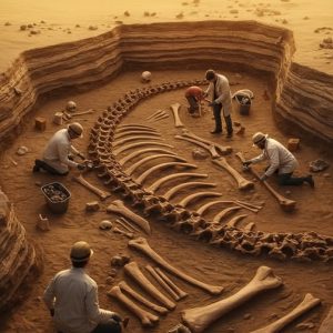BREAKING DISCOVERY: GIANT FOSSIL UNEARTHED IN DESERT EXCAVATION! Archaeologists stumble upon a colossal mystery buried beneath the sands of time. Under a relentless desert sun, a team of archaeologists has…