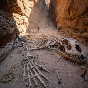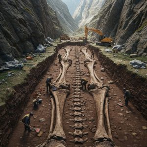 A remote desert canyon has erupted into the center of worldwide attention after researchers documented the colossal remains of what appears to be an ancient, previously unknown creature. The excavation team, initially conducting a geological survey of the canyon’s stratified cliffs, uncovered the skeleton partially embedded in hardened sediment layers, its enormous vertebrae and elongated […]