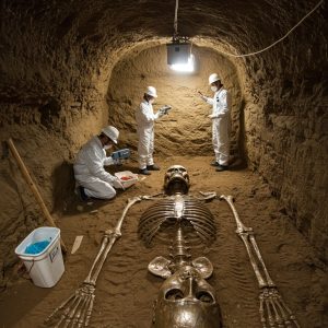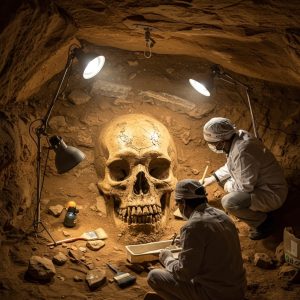 A team of archaeologists has uncovered a colossal skull hidden deep within a sealed subterranean chamber, instantly propelling the remote excavation site into the center of international scrutiny. According to preliminary reports, the chamber was discovered beneath layers of compacted earth and stone, its entrance concealed by structural collapse that may have preserved the contents […]