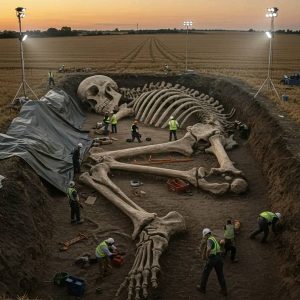Bones That Shake the Desert Deep in the heart of an endless, sun-scarred desert, a team of researchers has unearthed a colossal set of bones arranged in a long, curved line beneath the sand. The excavation site stretches across the empty plain like the exposed spine of some forgotten giant, compelling scientists, journalists, and conspiracy […]