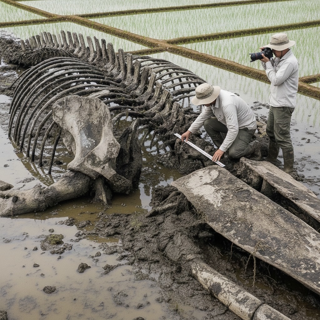 “This is an extraordinary find,” Dr. Sharma announced, her voice filled with a mixture of awe and academic excitement as she surveyed the massive ribs and vertebrae, now partially exposed to the tropical sun. “Preliminary observations suggest it could be a species of baleen whale, potentially dating back millions of years, when this area was likely under a vast ancient sea. The preservation in the anaerobic mud of these fields is truly remarkable.”