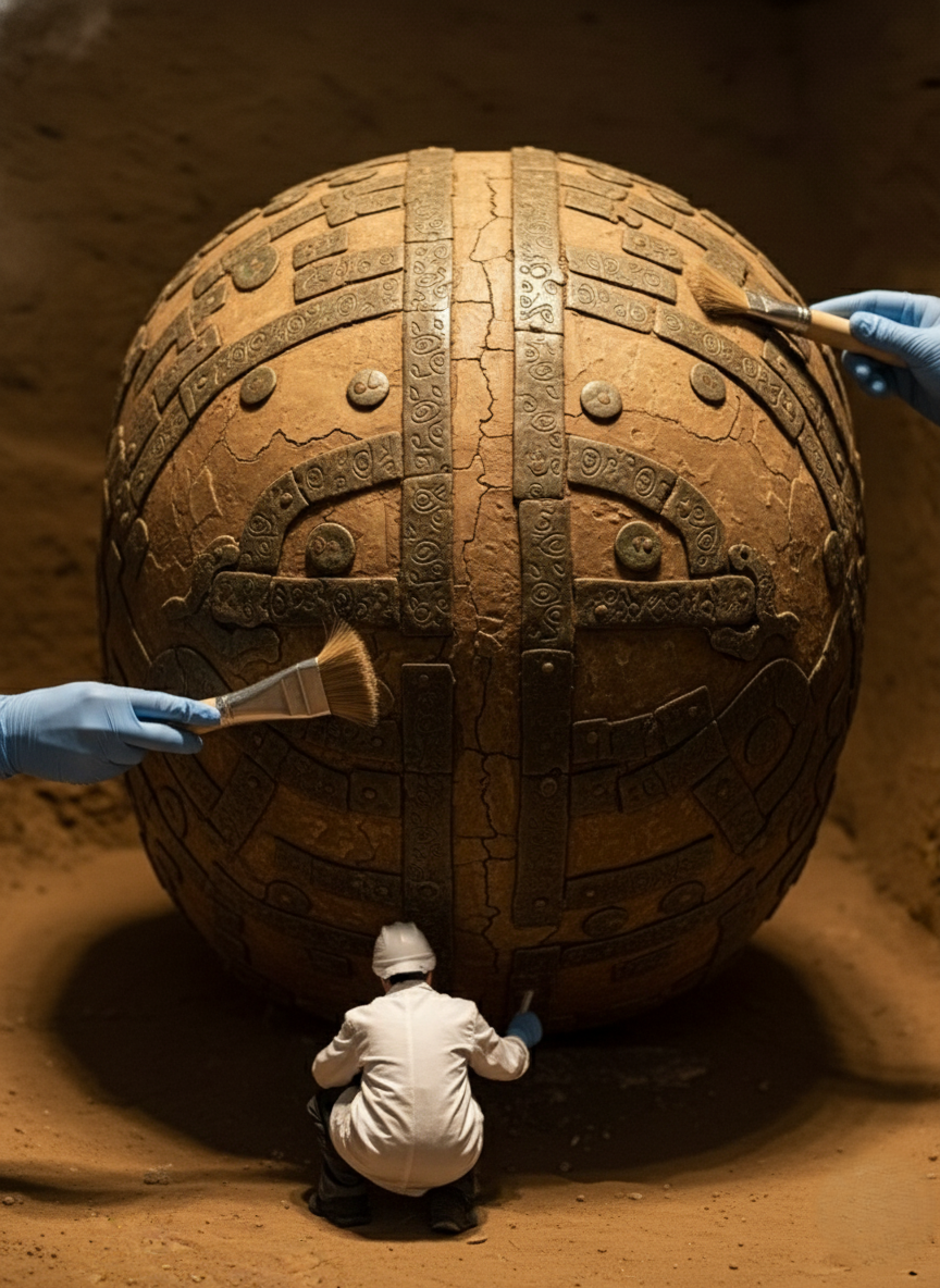 The find has already been classified as “archaeologically sensitive,” and access to the area has been tightly controlled by government and military authorities. Leaked drone footage shows tents, containment units, and scanning equipment surrounding the excavation zone — prompting speculation that the discovery’s true nature is being deliberately concealed. Experts remain divided: some suggest the metallic structures could have served as primitive cranial protection or ritual implants; others argue the sophistication of the design points to bio-augmentation, implying that whoever — or whatever — this being was, it possessed technology beyond the reach of any known civilization. Even more puzzling are the symbols etched into the skull’s surface — a repeating pattern resembling circuit-like glyphs that defy linguistic or cultural classification.