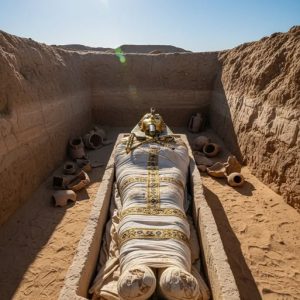 In the heart of a remote desert, a tantalizing discovery has sent ripples through the global scientific community: archaeologists have unearthed a stunning, fully preserved mummy adorned with a radiant golden mask. This breathtaking find has captivated historians and archaeologists alike, igniting a wave of excitement and speculation. The tomb, although partially collapsed, remains remarkably […]