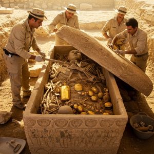 Untouched Royal Tomb Yields Pharaoh’s Gold Hoard: A Historical Earthquake A monumental archaeological team has announced the sensational discovery of a completely untouched Egyptian tomb, hidden for millennia in the sands near Luxor. The BREAKING NEWS is that the burial chamber was not an ordinary find; it contained a vast, glittering Gold Hoard that is unprecedented in its scale […]