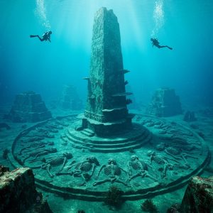 In a discovery that defies both archaeology and imagination, a team of deep-sea divers has stumbled upon a colossal submerged ritual site—a vast circular structure of stone surrounding a towering central monolith, all encircled by dozens of perfectly preserved skeletons resting in eerie formation. Found at a depth of nearly 900 meters off a remote […]