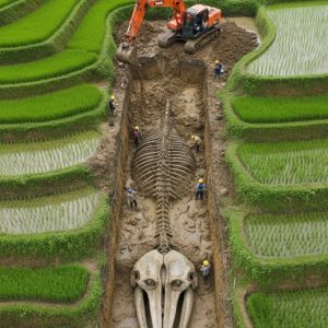 In a tranquil expanse of rice terraces, a monumental discovery has transformed a peaceful landscape into the epicenter of a global mystery. Workers, engaged in routine agricultural tasks, uncovered a massive skeleton hidden beneath layers of rich, fertile earth. As colossal bones began to emerge from the serene farmland, they ignited a wildfire of speculation […]