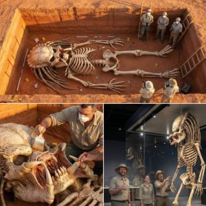 Deep within a restricted excavation zone, researchers have made a groundbreaking discovery: a colossal skeleton whose sheer size and unique anatomy defy all known records of human history. This astonishing find has unleashed a torrent of speculation and debate, raising a chilling question that looms large over the academic community: Is this the ultimate proof […]