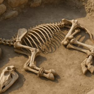 div[data-widget-id=”1903893″] { min-height: 300px; } In early 2025, a multidisciplinary archaeological team from the Insтιтute for Near Eastern Antiquities uncovered a colossal ritual skeleton at the desert-edge settlement of Ar-Ramadi, located on the west bank of the Nile, roughly 40 km north of Luxor. The site, previously known for scattered Old Kingdom domestic structures, revealed […]