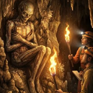 Deep within an uncharted crystal cavern, a pair of explorers has uncovered a sight so unsettling that it is already being hailed as one of the most uncanny archaeological revelations of the decade: a towering, mummified figure seemingly fused into solid stone. Illuminated only by flickering torchlight, the figure stands rigid with arms crossed, its […]