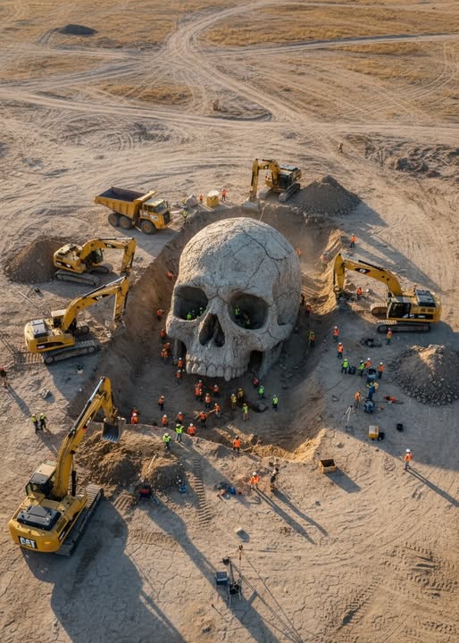 A discovery of this magnitude was never meant to remain hidden, and now, as the world gazes in disbelief, the implications ripple far and wide. Unearthed during routine construction, a gigantic human-like skull has sparked an unprecedented wave of ancient mystery and archaeological intrigue. Standing towering over machinery and workers, this colossal relic defies conventional understanding of early humanity, forcing us to reevaluate everything we thought we knew about our ancestors.