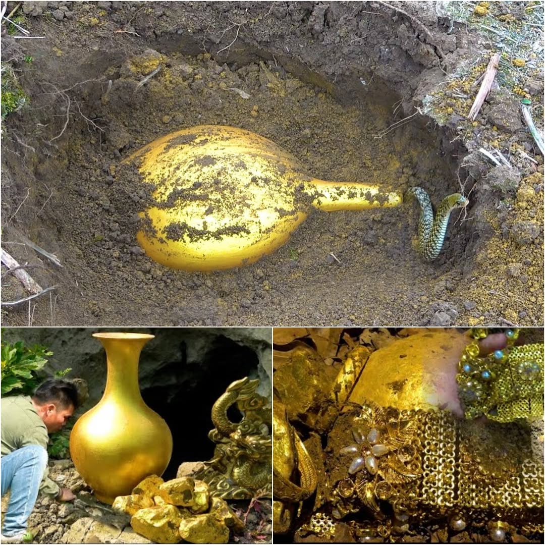In an unprecedented revelation that promises to reshape our understanding of ancient civilizations, a man recently unearthed an extraordinary gold vase, expertly hidden beneath layers of earth for over 3,500 years. As he brushed away the dirt to reveal the gleaming artifact, little did he know he was about to ignite a worldwide fascination that would capture the attention of historians, archaeologists, and treasure seekers alike.