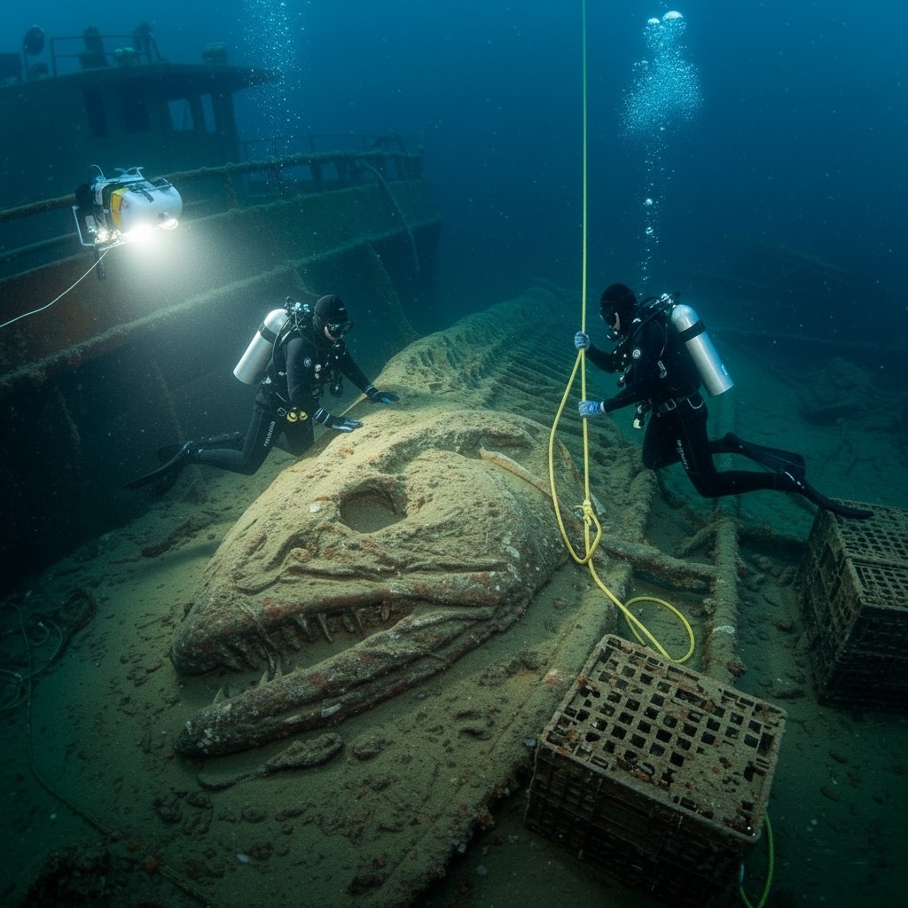 Unearthing the Leviathan of the Aegean: Divers Discover Ancient Ichthyosaur Effigy in Chios Shipwreck